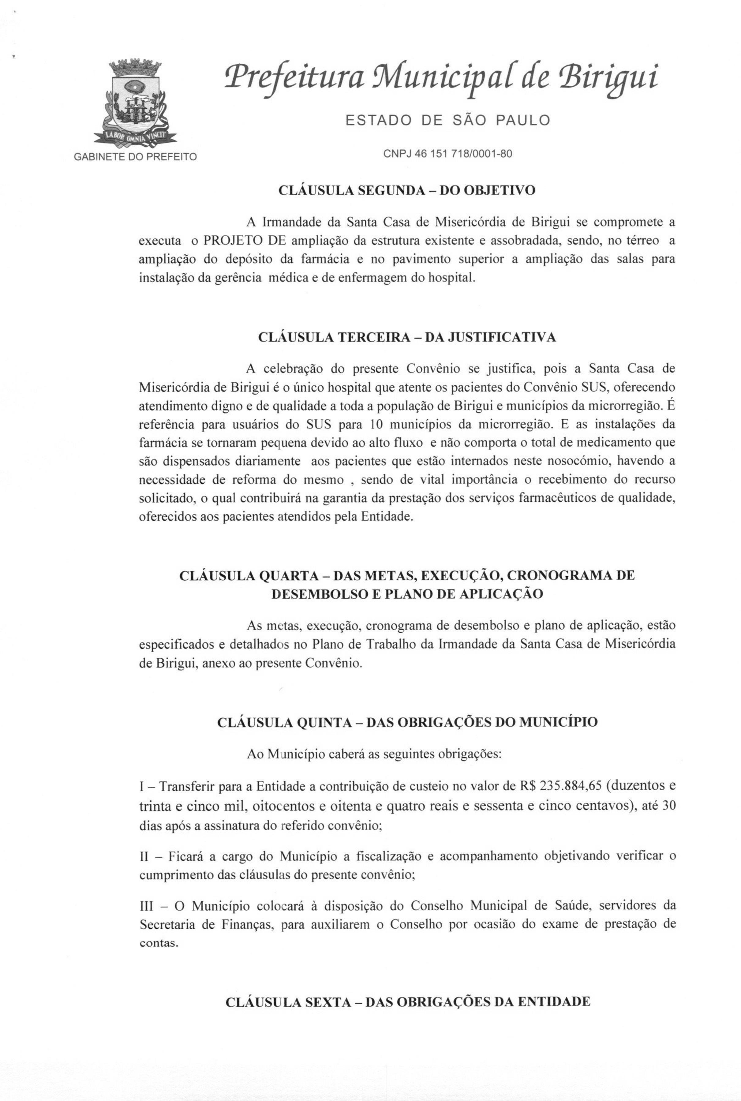 AUTORIZA A CELEBRAÇÃO DE CONVÊNIO ENTRE O MUNICÍPIO DE BIRIGUI E A IRMANDADE DA SANTA CASA DE MISERICÓRDIA DE BIRIGUI DECLARADA DE UTILIDADE PÚBLICA MUNICIPAL PELA LEI N° 422, DE 8 DE AGOSTO DE 1960, REFERENTE A AMPLIAÇÃO DO DEPÓSITO DA FARMÁCIA (TÉRREO) E PAVIMENTO, NOS TERMOS QUE ESPECIFICA E PROVIDÊNCIAS CORRELATADAS.